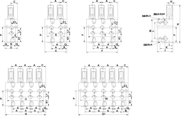 該系列雙線分配器在正面和上、下面均設有出油口,為雙向出油形式,正面上排與上面對應出油口貫通,正面下排與下面對應出油口相貫通,根據(jù)配管方向需要任意選擇,分配器活塞正反向動作分別從上下側(cè)出油口排出潤滑脂一次,為方便增大倍量的給油量,易改奇數(shù)出油,在上下對應的出油口間還設有合二為一的結(jié)構(gòu),使用時只需擰開下出口內(nèi)的螺釘,不用的出口用R1/4 螺塞封堵即可。KW系列雙線分配器可以從指示桿的動作直接觀察分配器的工作情況,還可以通過調(diào)整螺釘在規(guī)定的范圍內(nèi)方便地調(diào)整各個出油口的給油量。