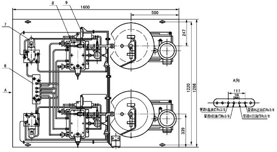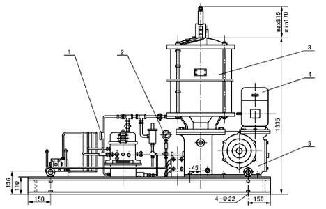 1 - 壓力表;2 - 壓力表;3 - 貯油器;4 - 電動機(jī);5 - 電動潤滑脂泵