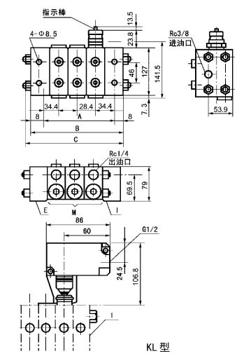 KJ、KM、KL系列單線遞進(jìn)式分配器,它由中碳合金結(jié)構(gòu)鋼制造的供給體、端部體和3~8片根據(jù)設(shè)計(jì)需要所確定的給油量和出油口數(shù)的中間體組合而成。分配器的正常出口設(shè)置于分配器的兩側(cè)面,在上面還設(shè)置有預(yù)備出口,各中間體的出油口內(nèi)均裝有止回閥,能徹底防止因潤滑點(diǎn)背壓作用而產(chǎn)生潤滑脂的逆流,保證了各出油口的給油量定量、準(zhǔn)確。