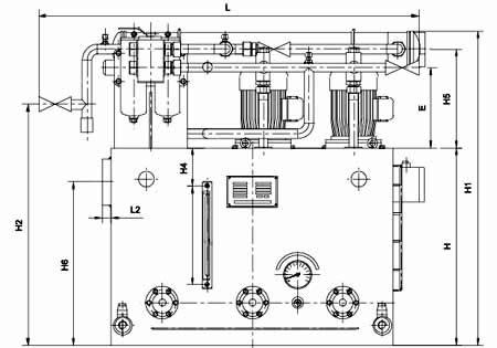 ≥250L/min稀油站,采用蒸汽加熱油箱中的潤滑油,儀表盤尚多一檢測冷卻器進(jìn)出水管壓差的儀表,其主要部件均另外裝于基礎(chǔ)上;而≤125L/min稀油站的全部部件都裝在油箱上,為整體式結(jié)構(gòu)。 |