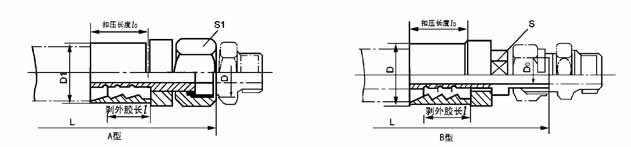 2、附錄表中d1 括號內(nèi)尺寸為擴(kuò)口式管接頭標(biāo)準(zhǔn)中所缺少的螺紋,由使用者自己配制。尺寸L=l+2l2 |